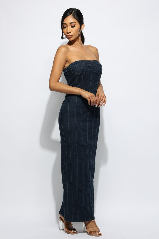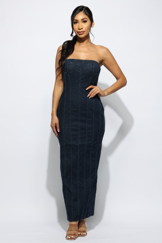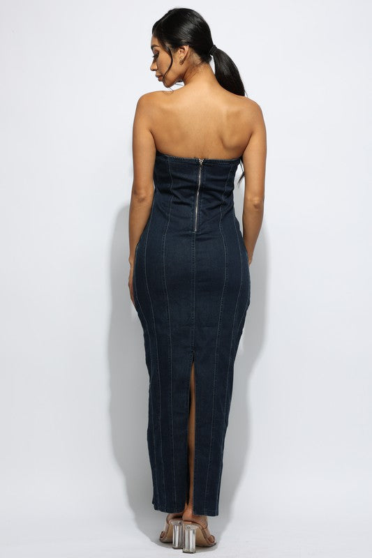 Effortless elegance meets modern style in our Zipper Back Tube Maxi Dress.